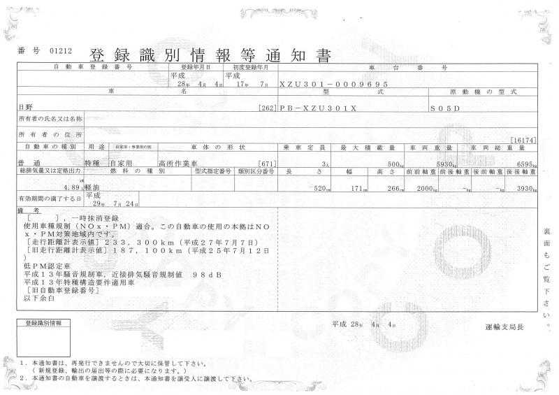 日野デュトロ : 高所作業車 A4サイズで印刷 日野デュトロ : 高所作業車